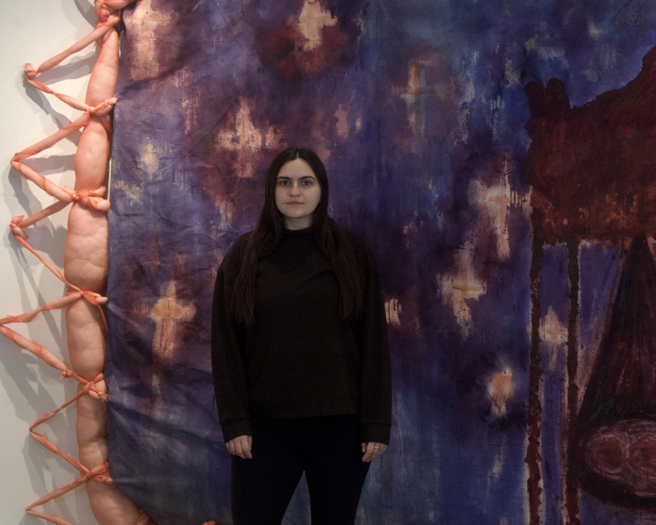 I work between soft sculpture, painting, and installation to metabolize and critically examine inherited ideas of authority. Growing up in a conservative religious environment, I developed a keen sense of self-censure as a form of personal protection. My work reflects on this embodied censorship through the use of a personal, cryptic visual system adjacent to familiar religious iconography.
